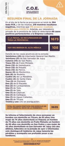 El total de jujeños que se han recuperado de la enfermedad asciende a 1653.