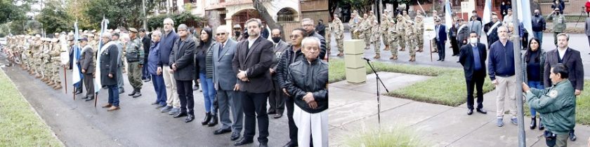 Para comenzar el acto protocolar se inició con el izamiento del Bandera Nacional y de la Libertad Civil, luego se entonaron las estrofas del Himno Nacional Argentino, se colocó ofrendas florales a los pies del Monumento y los emotivos discursos de Julio Barrionuevo y el Secretario de Gobierno, Gastón Millón.