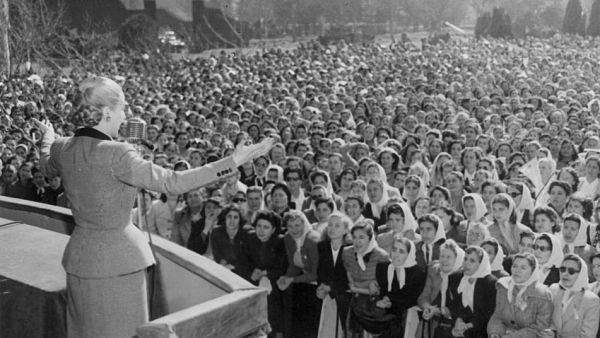 Con Perón en la Casa Rosada, Evita despegó su carrera política. Días después del triunfo de Perón, pronunció su primer discurso político en un acto en el que comenzó a exigir el sufragio femenino, un derecho que se conquistaría poco después.