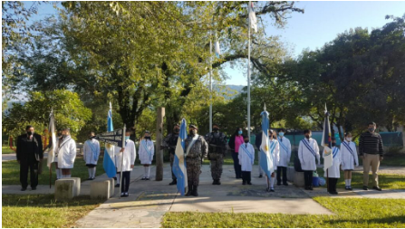 Durante el acto participaron los alumnos de la escuela primaria N° 190, la escuela primaria 335, la escuela N° 48, el Cuerpo de Infantería de la Provincia acompañados de vecinos y miembros de la comunidad.
