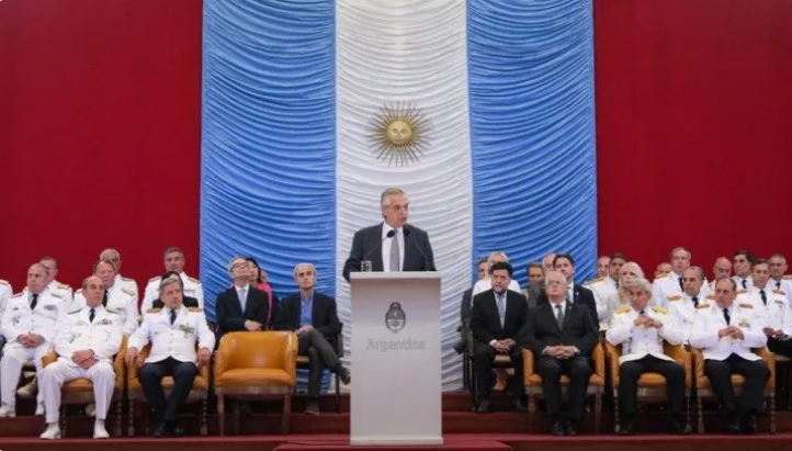 " En vuelo a Ushuaia fuimos escoltados por dos aviones Pampa III como muestra de reconocimiento y respeto institucional, dispuestos por el jefe del Estado Mayor General de la Fuerza Aerea Argentina, brigadier general Xavier Julián Isaac", escribió el presidente Fernández en su cuenta de Twitter, y completó con el hashtag "#DemocraciaParaSiempre".