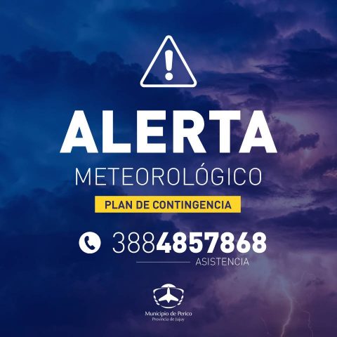 Ante cualquier emergencia, o contingencia por lluvia y temporal, Comunicarse con la línea de atención de Defensa Civil #103 o al contacto local 3884857868, además les acercamos algunas recomendaciones : No sacar la basura para evitar tapar los desagües. No permanezca a la interperie, en caso de estar en la calle, circule por lugares seguros. No pase por sectores bajo agua, mucho menos si supera la altura de la rodilla. No toque alambrados ni cables en la calle, si ve esta situación avisar inmediatamente al #103 o al 3884857868.