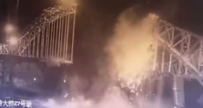 El momento en el que se desploma el puente del ferrocarril Sichuan-Qinghai en China