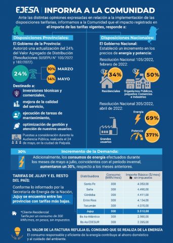 Ante las diversas versiones y opiniones expresadas en relación a la implementación de las nuevas disposiciones tarifarias, desde EJESA compartieron un comunicado institucional con información de interés para la comunidad.