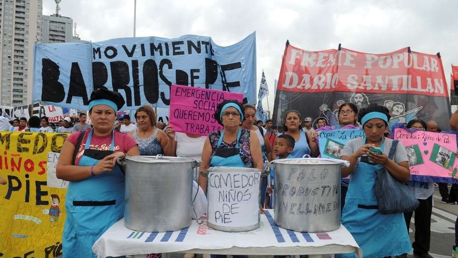 La protesta fue organizada por el Movimiento Evita, la Corriente Clasista y Combativa (CCC) y la Confederación de Trabajadores de la Economía Popular (CTEP), entre otras agrupaciones, que vienen negociando con el Gobierno de Mauricio Macri el plan de emergencia social destinado a los sectores más vulnerables de la población.