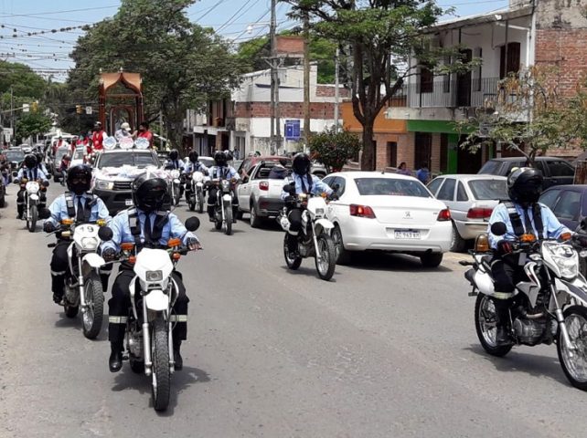 Una caravana procesional, fue escoltada por personal de la dirección general de Tránsito y Transporte, dependiente de la secretaría de Servicios Públicos, que desplegó un operativo de tránsito acompañando el recorrido con modificaciones en la circulación vehicular. Partieron a horas 10, desde la Catedral, dando inicio al recorrido previsto. De esta manera, se recorrió arterias céntricas con un destino inicial hacia Barrio Gorriti, para luego redirigirse al casco céntrico y continuar por Chijra, Alto y Bajo La Viña; Campo Verde; Los Perales con retorno a zona centro.
