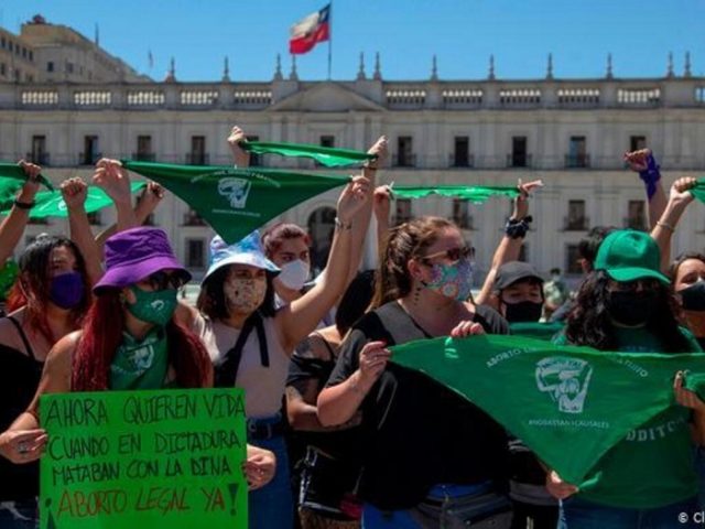 En el medio hubo protestas que se concentraron en el centro Santiago donde más de 200 mujeres se congregaron en inmediaciones del Palacio gubernamental de La Moneda. En sus cuellos colgaban los pañuelos verdes símbolos de la resistencia femenina que se ha extendido por toda América Latina en apoyo a los derechos sexuales y reproductivos de las mujeres.