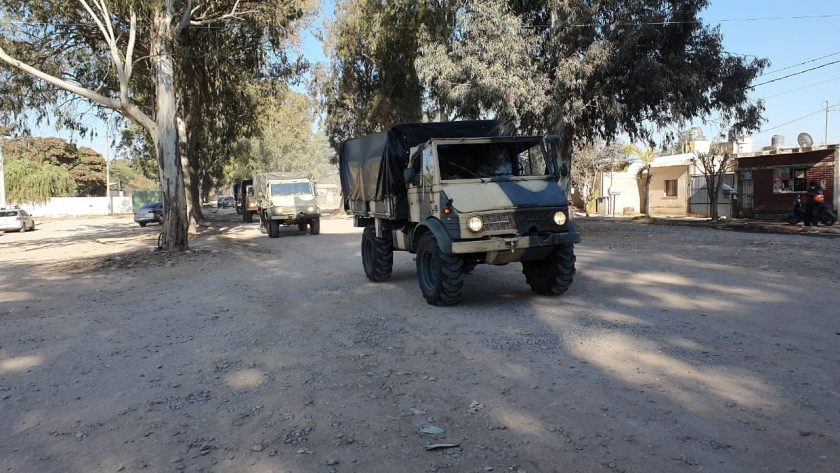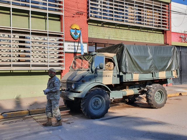 En la mañana de hoy arribaron a Perico camiones del Ejercicito Argentino con el propósito de hacer entrega de Bolsones de Mercaderías para un sector del barrio la costanera