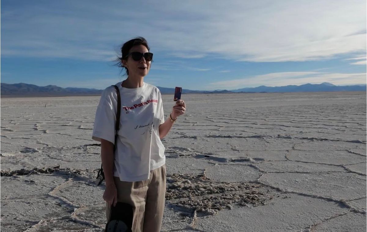 Durante su visita, Clarke exploró el pintoresco pueblo de Purmamarca, donde quedó fascinada por la belleza del Cerro de los Siete Colores y la calidez de su gente. También se maravilló con las Salinas Grandes, ese majestuoso desierto blanco a más de 3.400 metros de altura que refleja el cielo y cautiva con su inmensidad. Entre llamas, viento y horizonte, la actriz se fotografió junto a la tradicional whipala, símbolo de identidad y orgullo del norte argentino.