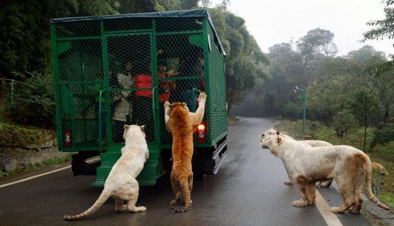 Algunos consideran al zoológico chino como una atracción peligrosa, mientras otros opinan que es la mejor manera de conservar los animales con mayor libertad, según informó la agencia china CCTV a través de su cuenta de Facebook.