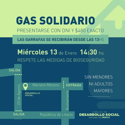 La Directora de Desarrollo social del Municipio de Perico, Sra. Magdalena Tejerina, Informó que mañana miércoles 13 de Enero, se realizará la entrega de Garrafas Solidarias, en las Oficinas de Desarrollo social ( calle 23 de agosto esq. Mariano Moreno) desde la hora 14.