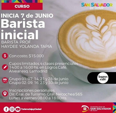La Secretaría de Cultura y Turismo trabaja de forma articulada con el sector privado con el objetivo de brindar un mejor servicio gastronómico a los jujeños y turistas por tal motivo ofrece una importante capacitación para baristas del sector privado durante el mes de junio (con costo). Las inscripciones son de forma presencial en la Dirección General de Turismo ubicada en calle Necochea 565 de lunes a viernes de 8 a 18 hs.