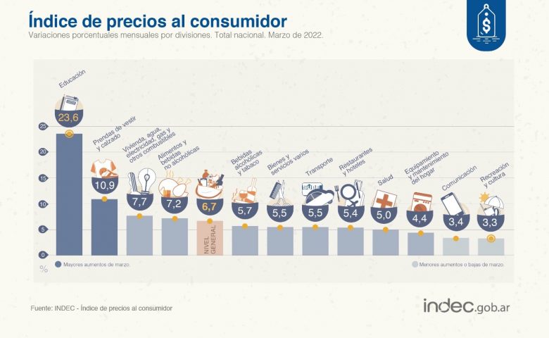 El mes pasado, el rubro “educación” mostró el principal avance, una suba típica que se da en marzo, ante el inicio del ciclo lectivo y los aumentos de la canasta escolar. El aumento fue del 23,6%.