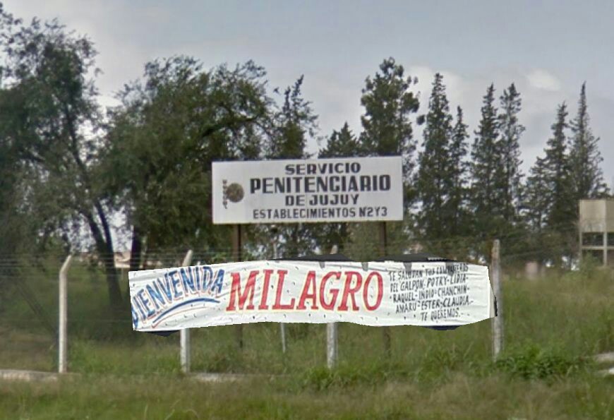 Durante la madrugada del sábado, comenzó a circular en las redes sociales y cadenas de whatsapp una imagen de bienvenida a Milagro Sala plasmada en un pasacalle ubicado estratégicamente debajo del cartel identificatorio del penal N° 3 de Alto Comedero.