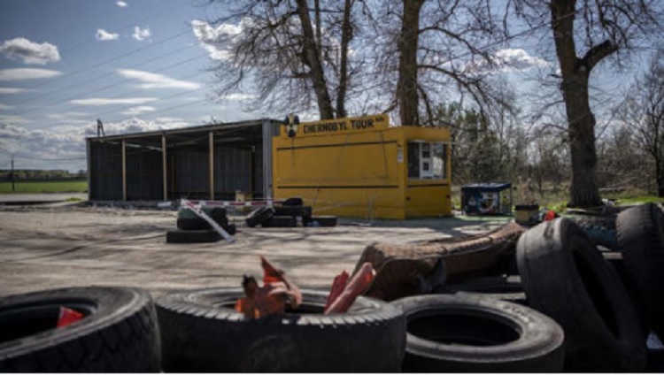 Unos neumáticos apilados en el centro de la carretera son la última barricada a la que está permitido acercarse. Es el límite de la zona de exclusión alrededor de la central de Chernobyl y el punto de inicio de las visitas guiadas que en los últimos años acompañaban a los turistas a uno de los lugares más siniestros de la historia de Europa. Unos carteles resumen lo que ocurrió tras el accidente nuclear del 26 de abril de 1986. La garita del puesto de control tiene los cristales agujereados por impacto de balas al igual que la caseta del punto de información del “Chernobil tour”. Ya no hay tours y el hotel Stalker a la entrada de Dytiatky está cerrado. El pueblo está a un par de kilómetros de la barrera y a unos 30 de la central nuclear, también ocupada hasta finales de marzo por los rusos. Sus habitantes, testigos directo del comienzo de la ofensiva, vivieron durante semanas en una doble angustia, por la ocupación y el temor a una nueva catástrofe. Es un miedo que persiste.