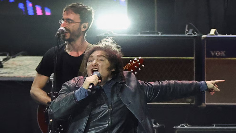 El jefe de Estado presenta su nuevo libro llamado “La Construcción del Milagro” en el que desarrolla el camino recorrido hasta conducir los destinos del país desde la Casa Rosada. En el mismo escenario, brinda un show cantando junto al grupo “La Banda Presidencial”, con quienes que recreará el hit Panic Show de La Renga, con el que el libertario se identifica, entre otros temas. Como corolario de la presentación, Milei volverá a dirigirse con un discurso a los miles de militantes que lo escucharán in situ y a los que seguirán la transmisión del acto.