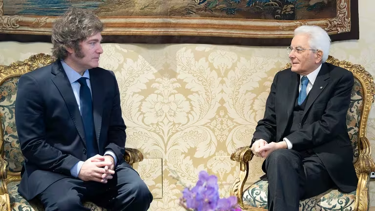 Luego, Milei se subió al auto oficial con su hermana Karina para mantener un encuentro formal con Sergio Mattarella, presidente de Italia. Se fue a las 12.50 (hora local), y regresó una hora más tarde. Está previsto que almuerce en el hotel y luego mantenga una reunión oficial con Georgia Meloni, premier italiana.