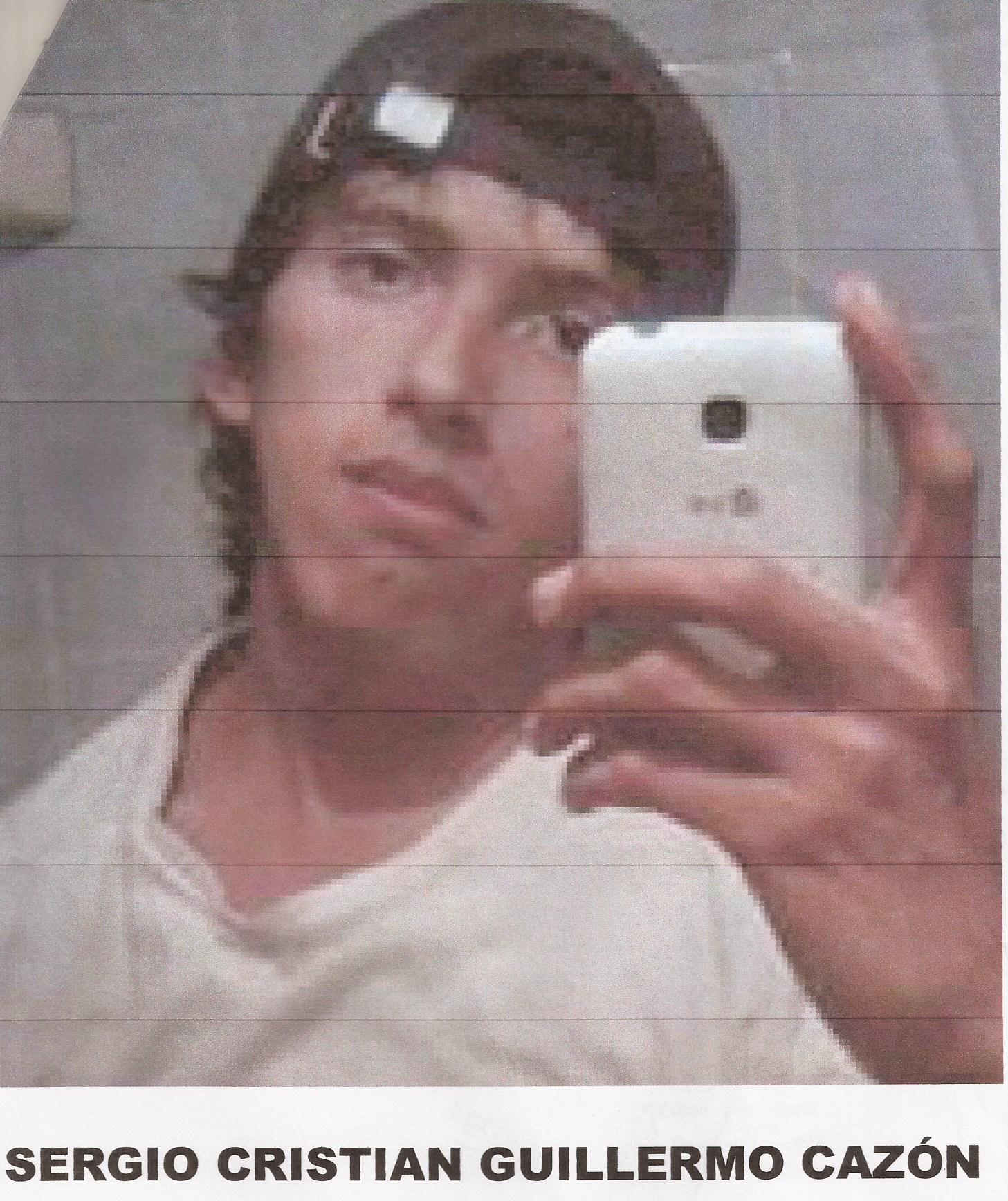 SERGIO CRISTIAN GUILLERMO CAZON, de 21 años de edad con domicilio en barrio Mariano Moreno, del cual se ausenta desde el día 20 del corriente mes y año. Actuaciones a cargo de la seccional 30º. El joven responde a los siguientes datos filiatorios: estatura aproximada 1.65 metros, contextura física delgada, tez trigueña, cabellos ondulados de color negro con la particularidad de poseer lunares en el rostro. Al momento de ausentarse vestía una camisa de vestir de color blanco, pantalón jeans de color azul y calzaba zapatillas de cuerina de color blanco.