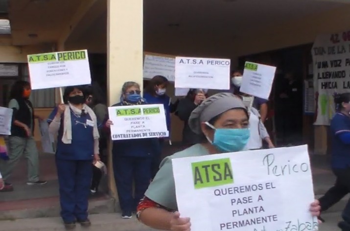 ENTRE LOS RECLAMOS QUE SOLICITAN, SE PUEDE MENCIONAR EL NO DESDOBLAMIENTO DE LOS SALARIOS POR PARTE DEL GOBIERNO DE LA PROVINCIA, EL TEMA DE PARITARIAS, PASE A PLANTA PERMANENTE, EL PAGO DEL ADICIONAL DE $ 20.000 OTORGADO POR NACIÓN, EL INCENTIVO DE $ 5.000 Y LA PROVISIÓN DE INSUMOS PARA EL PERSONAL.