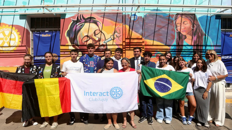Sadir encabezó el acto protocolar en el que se inauguró oficialmente un mural “120 pinceladas” pintado de forma colectiva entre artistas plásticos jujeños, vecinos y socios rotarios, en la fachada de la sede del Rotary Club Jujuy, con motivo del aniversario de la organización internacional.