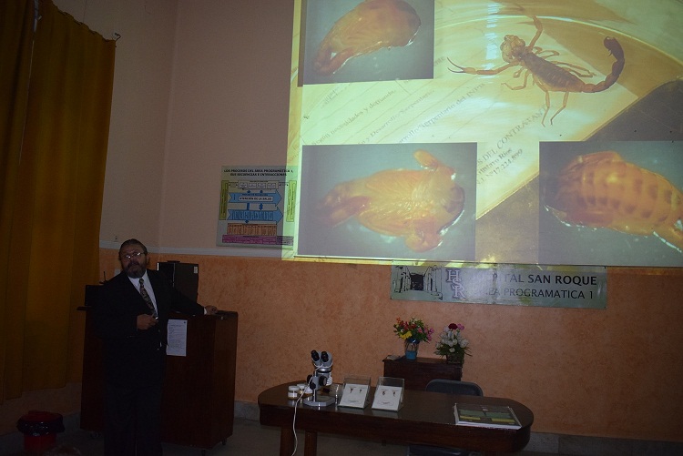 La capacitación para médicos, bioquímicos, enfermeros y agentes sanitarios estuvo a cargo de Adolfo De Roodt, reconocido especialista del Instituto Malbrán, y se llevó a cabo en el hospital “San Roque” y en localidades del Ramal. Al respecto, la jefa del Departamento de Zoonosis, Silvia Frisón de Costas, explicó que los equipos de salud actualizaron conocimientos sobre este tema que afecta principalmente a las zonas de Ramal y Valles por sus características climáticas. “En el 2002 se dieron los primeros casos graves de escorpionismo en Jujuy con la muerte de dos niños, uno en San Pedro y otro en Ledesma. A partir de allí tenemos provisión de suero para disminuir el efecto del veneno en todos los hospitales que lo solicitan y en stock”, advirtió.
