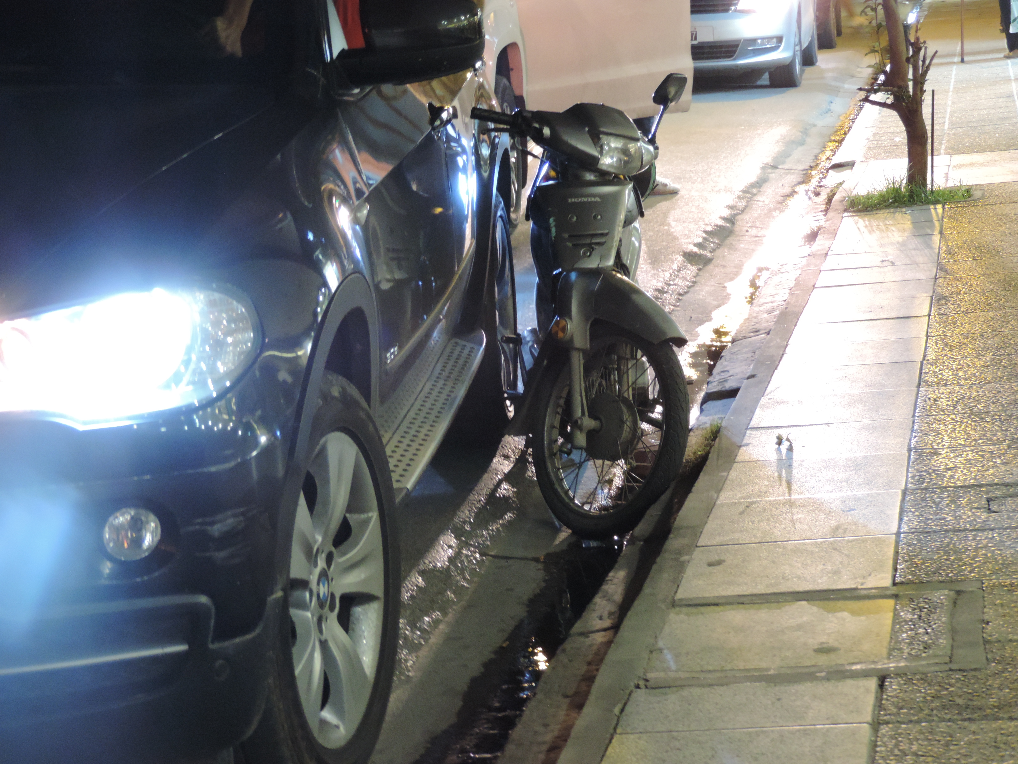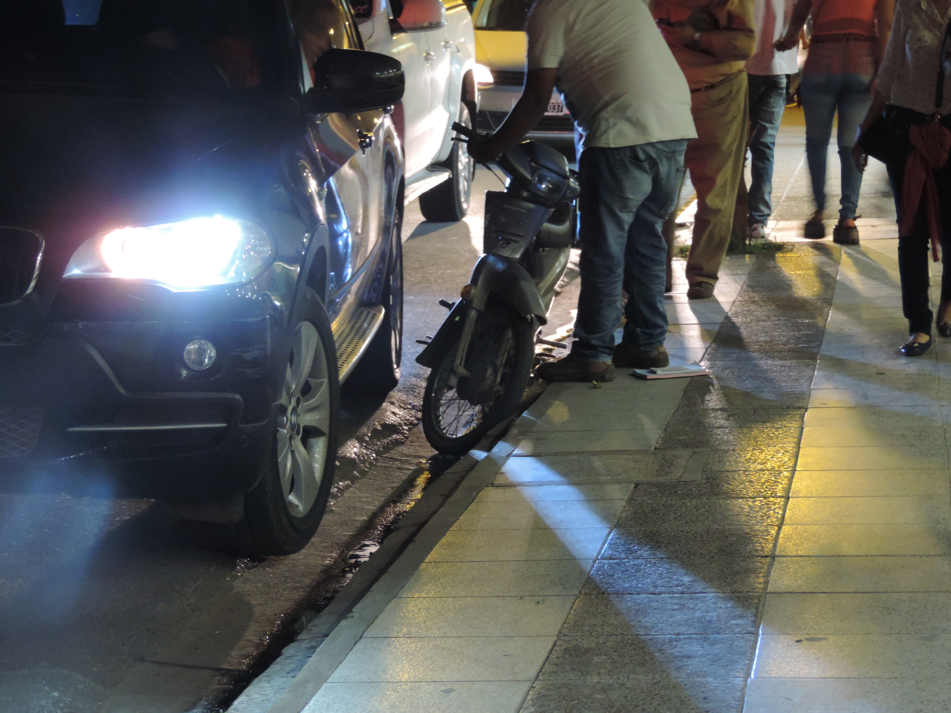 En la ya de por sí sumamente angosta calle Belgrano, una de las calles céntricas más importantes y que no da abasto, donde se puede estacionar sobre el margen derecho, alguien dejó su moto sobre el margen izquierdo, al parecer, mientras compraba algo en alguna de las tiendas comerciales.