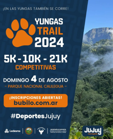 En agosto, vuelve "'Yungas Trail", organizado por la Secretaría de Deportes de Jujuy. Se trata de una competición de Trail Running que se desarrollará en el entorno del Parque Nacional Calilegua.
